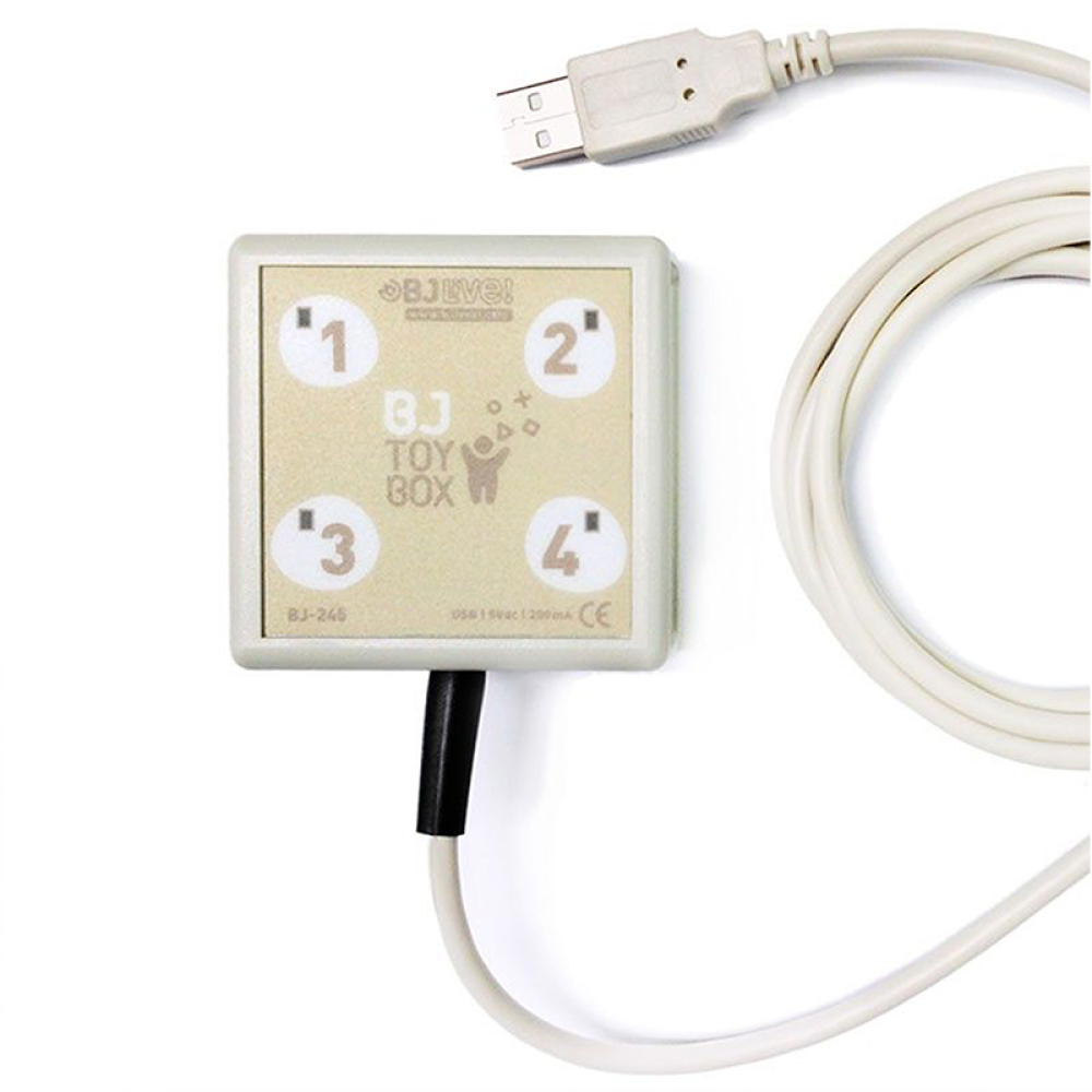 Met de BJ ToyBox is het mogelijk om schakelspeelgoed te koppelen aan een computer of dynamisch communicatiehulpmiddel. VIa de USB kabel kan het schakelkastje aan de computer of het communicatiehulpmiddel aangesloten worden. VIa verschillende bedieningsvormen kan op het scherm een plaatje/knop geselecteerd worden wat ervoor zorgt dat het schakelspeelgoed aan- of uit gezet kan worden. De bediening kan via directe bediening op het touchscreen, via een muisvervanger of schakelaar. Ook bediening via oogbediening is mogelijk, net afhankelijk van wat het gekoppelde apparaat voor mogelijkheden heeft.