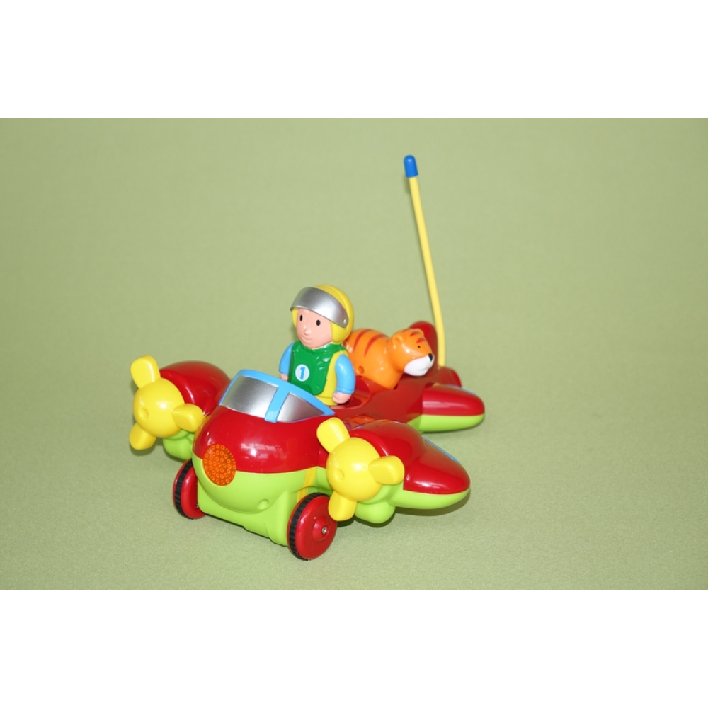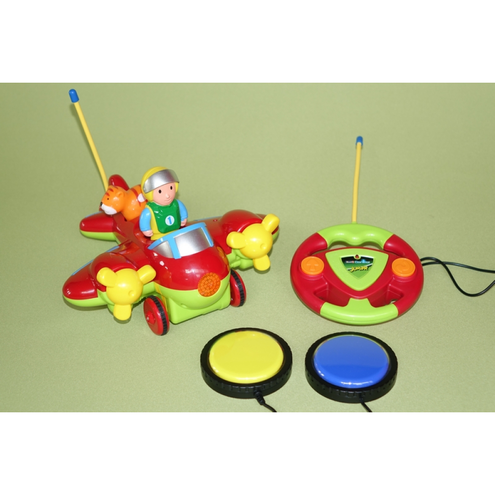 Dit leuke vliegtuig is met twee losse schakelaars of de adremo hoofdsteun (tussenstekkertje niet inbegrepen) te besturen.