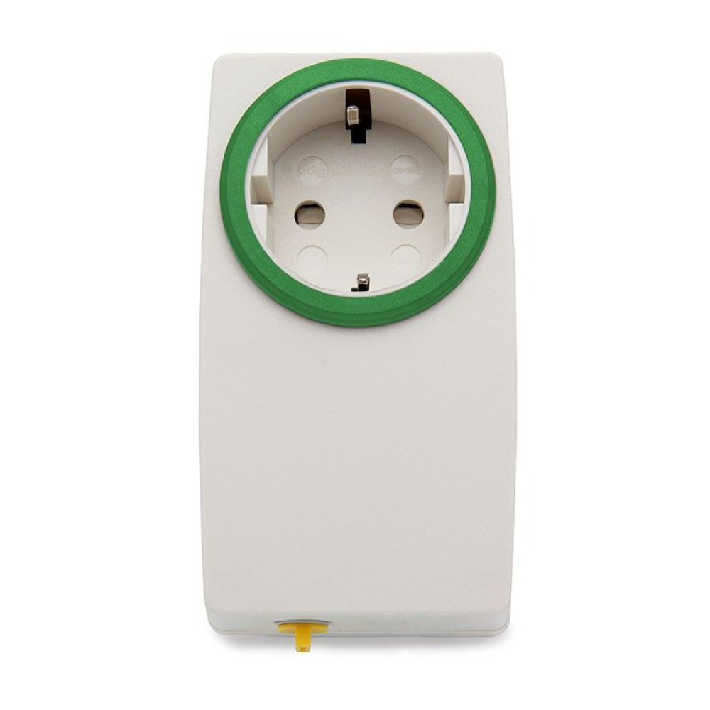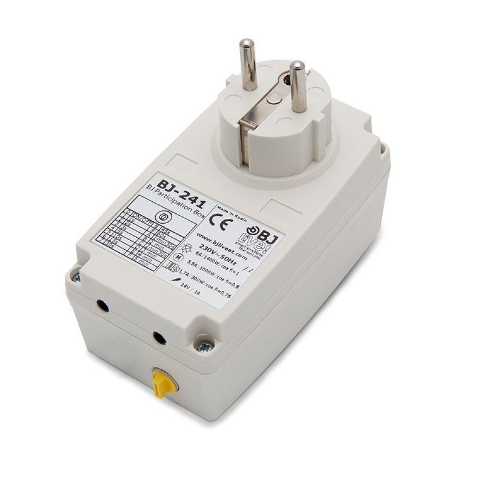 De schakelaar zit gekoppeld aan de participatie box die in het stopcontact gaat en waar het elektrische apparaat op aangesloten is.