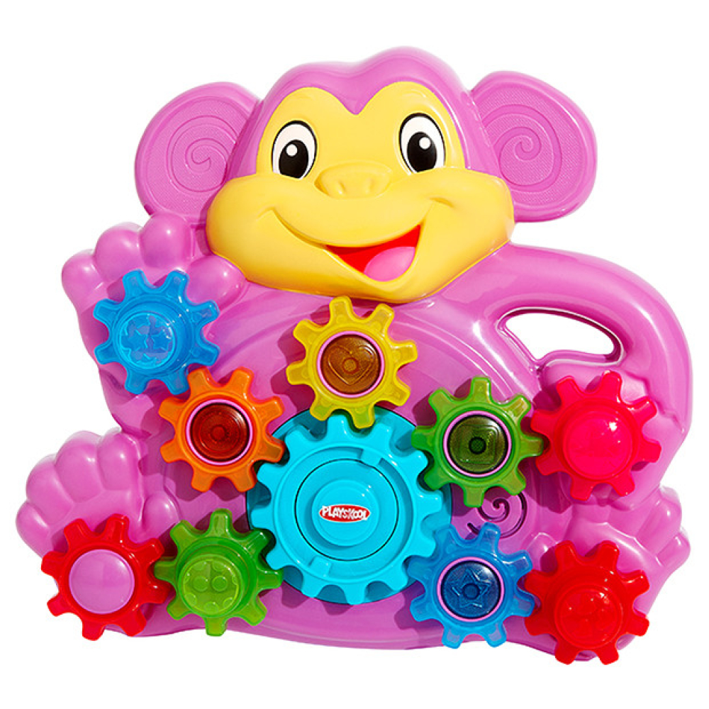 Deze aap zorgt voor veel speelplezier. Hij wordt geleverd met 9 vrolijk gekleurde tandwielen die op verschillende plekken op de aap gezet kunnen worden.Met een druk op de knop gaan de tandwielen draaien en klinken er gezellige geluidjes en gaan de gekleurde lampjes branden.